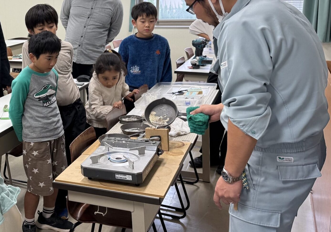 ③『溶けやすい金属を使ってオリジナルキーホルダーをつくろう』の会場の様子