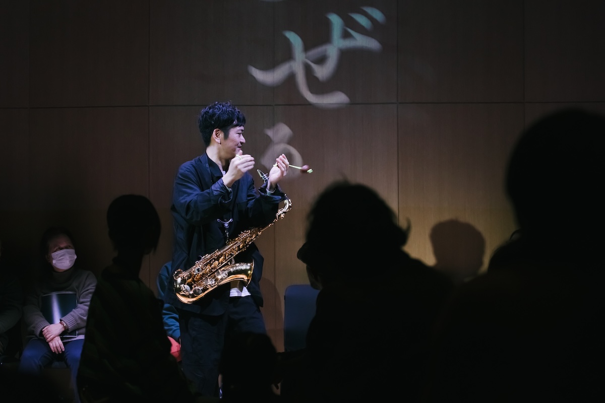 鈴木広志さんのサクソフォンのソロでは、新作アルバム『floracomposia』より「campanula」「tktkmum」「manoa salmon2」の3曲を、シンポジウムの特別バージョンで、アフリカの打楽器アサラトも交えてご演奏いただきました。聴く人の身体に染み込んで鳴る旋律と独特の世界観に引き込まれました。